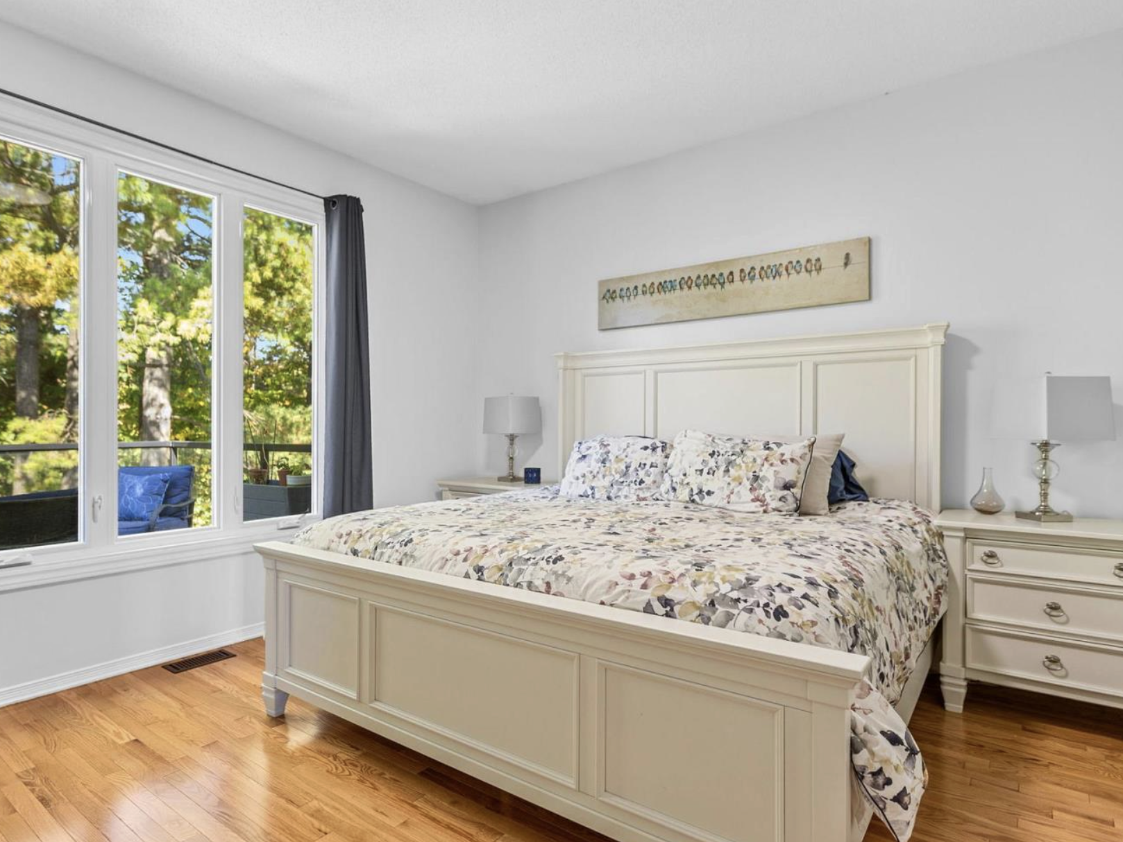 ONE OF A KIND on the Kanata Golf Course! Incredible views from your private backyard that is complete with a balcony overlooking the mature trees, a perfect very easy to manage salt water pool (20 FT X 12FT) & a covered ALL cedar “Florida” space! This open airy home offers around 2800 square feet! of finished space (including lower level) An in law suite in the lower level would be a breeze to accommodate! The nice OPEN floor plan offers 10-foot COFFERED ceilings in the living room & dining room! NO carpet in this home, site finished hardwood on the main level & a luxury vinyl in the lower! The kitchen was JUST totally renovated (2024) with white shaker style cabinets, subway tile backsplash & a HUGE granite island with seating for 4 & built in cabinets! Easy access to the balcony from the kitchen that offers INCREDIBLE views of the golf course, glass railings so your view is not obstructed! A STUNNING floor to ceiling window in the kitchen has to be seen in person to really appreciate, it’s breathtaking! GOOD size primary & walk in closet! The RENOVATED 5 piece ensuite offers a free-standing tub, oversized walk-in shower, 2 basins & granite countertops! The finishes are gorgeous throughout!! FULLY finished WALKOUT lower level, you do NOT feel like you are in a basement as this entire floor is very bright thanks to the LARGE windows & 2 sets of new patio doors! A large rec room, TWO additional bedroom, a room with built in kitchenette, a FULL bath with a WALK IN SHOWER. The backyard is an absolute oasis STEPS to shops, grocery, transit & so much more Kanata Lakes has to offer! Windows replaced in 2024 (most), Roof 2018, Ac 2018 & Furnace 2015, Pool 2023. TOTALLY turn key!