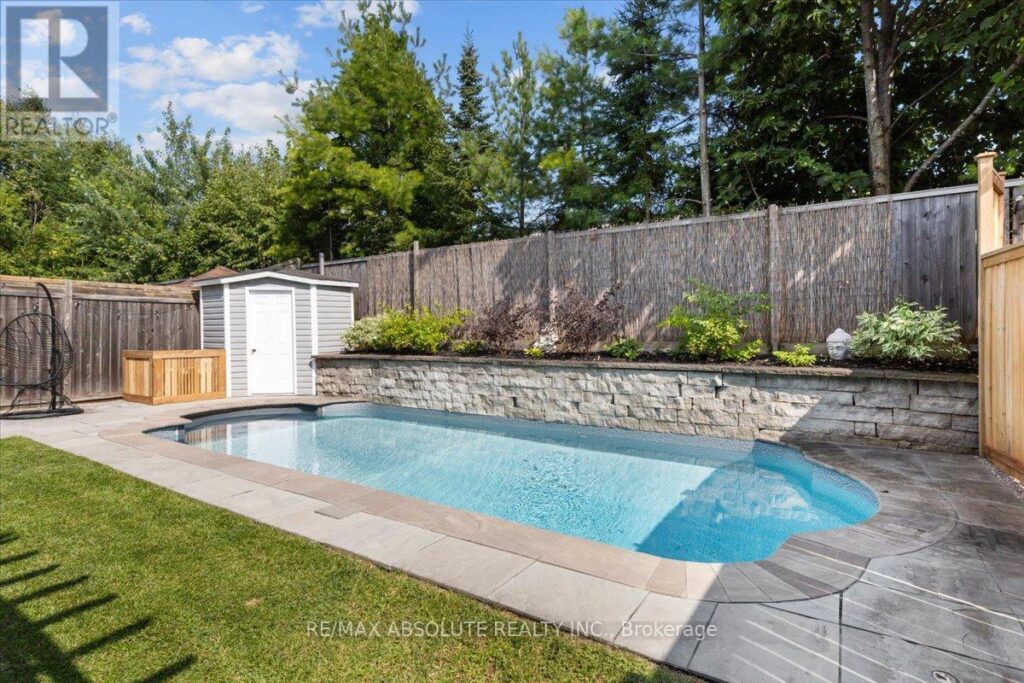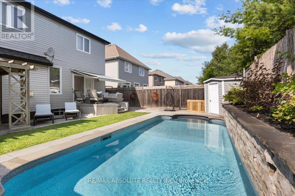 NO rear neighbors! A home like this is HARD to find! Exceptional location- Jackson Trails is a great community with easy access to the highway, walking distance to St Stephens Elementary School, parks & so much more! Meticulously maintained by the original owners inside & out! The entire driveway is interlocked! Covered front porch- landscaped in the front, side & back! The pre finished hardwood floors look brand new! California shutters throughout, this is a very pretty classic home. Upgraded kitchen offers LOTS of shaker style cabinets, granite countertops, subway tile backsplash & stainless Fisher & Paykel appliances! Main floor office with French doors, could be a playroom too! The large great room has a gas fireplace with a white mantle. Updated lighting & LOTS of pot lights! Open hardwood staircase with a BIG square window that floods the 2nd level landing. HUGE primary & refreshed luxurious ensuite w oversized shower! 3 great scaled bedrooms, laundry & main bath complete the 2nd level! All bathrooms offer stone countertops! FULLY finished lower level w 2 large windows, FULL 3 piece bath & the home theatre is included!! The PERFECT size SALT water pool is 24 ft x 12 ft…easy to manage & enjoy! NEW (2022/2023) liner, heater, pump & salt cell! A composite deck & awning- wonderful bright SOUTH facing backyard! NEW furnace & AC! AMAZNG value! (40365989)