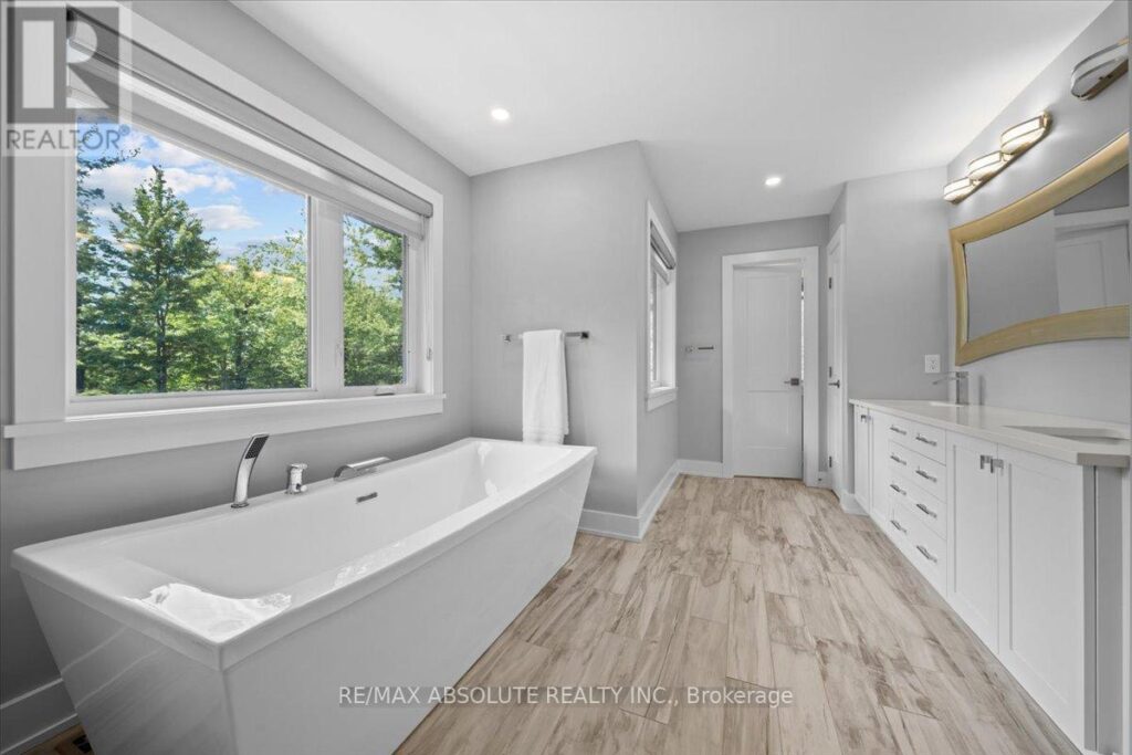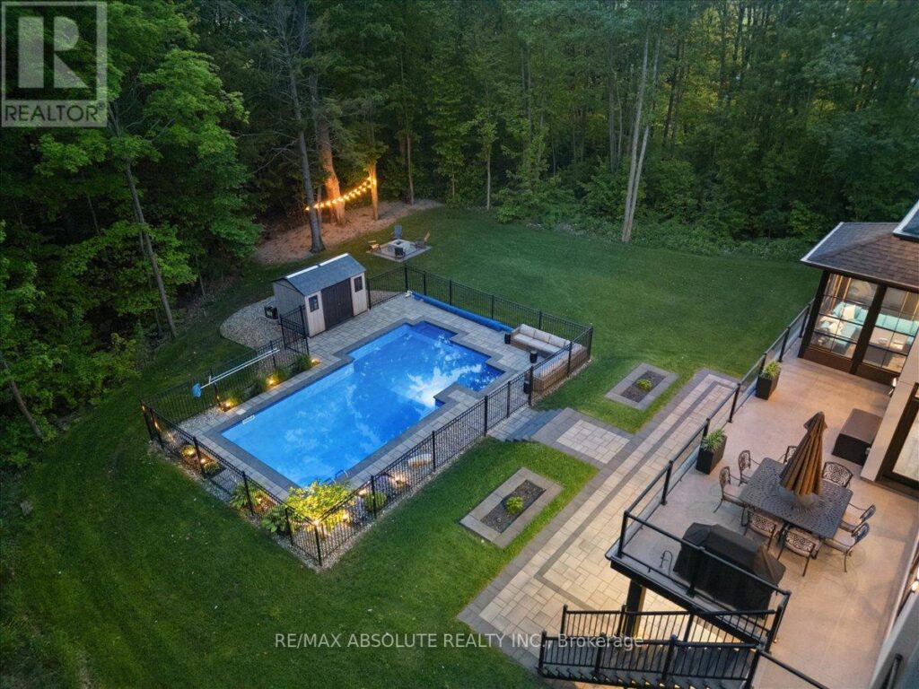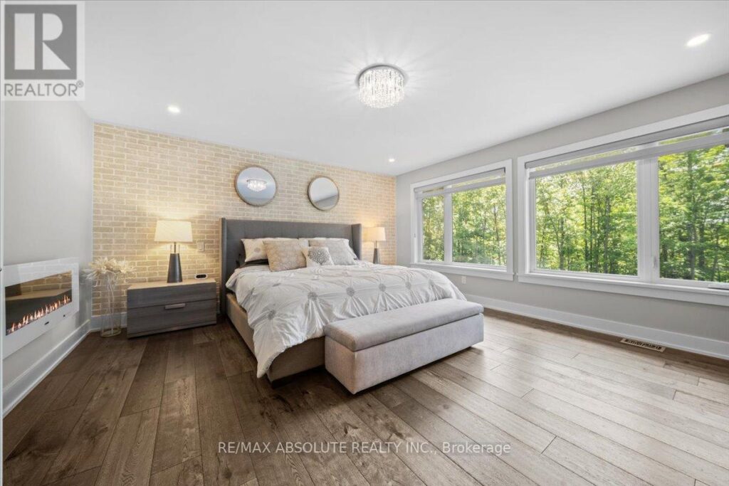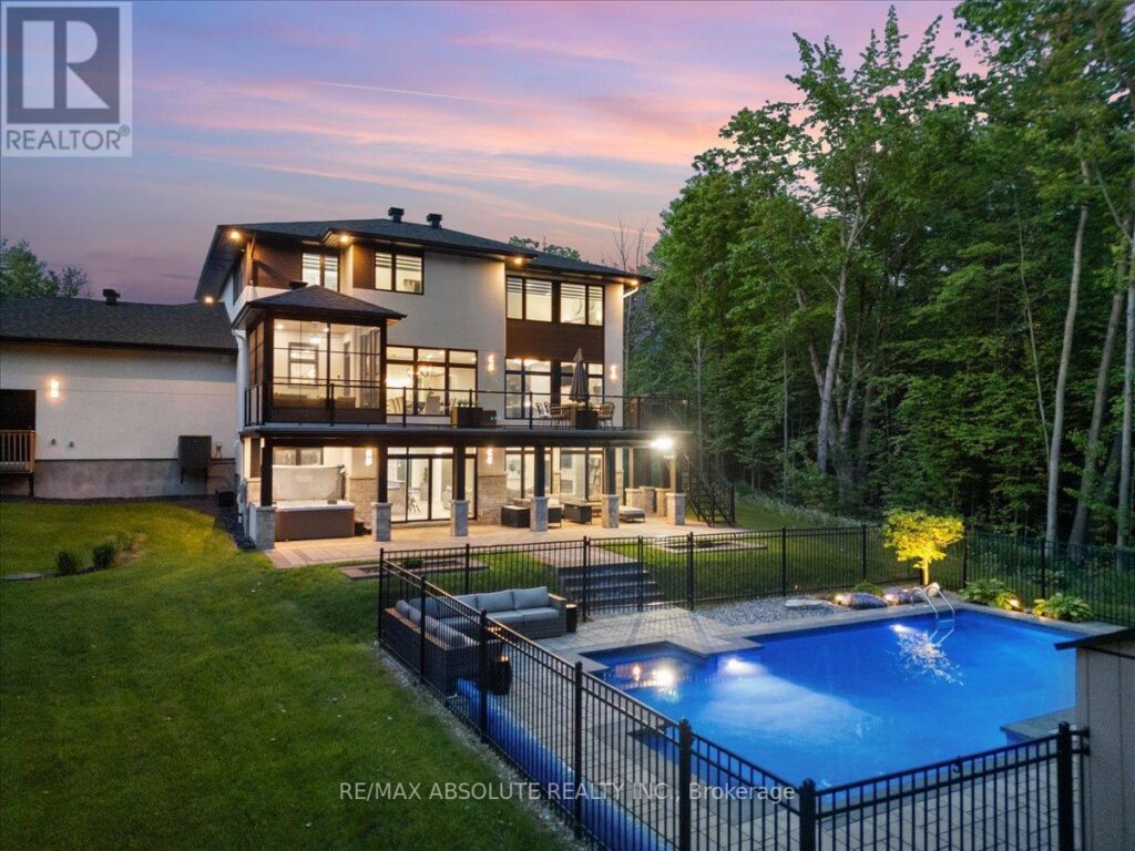 Derbeyshire is THE sought-after street in Kanata North! This 5 beds, 5 bath custom “SMART” home is NESTLED within gorgeous mature trees & MINUTES to everything essential! Picturesque views from EVERY window! This BETTER THAN NEW modern defines VALUE! OVER 4500 SF of FINISHED space (main, 2nd & lower) 8″ hardwood throughout! Striking GOURMET Laurysen kitchen is a CHEF’S dream, luxury appliances include double wall oven & side by side fridge! The custom glass enclosed wine storage is a piece of art! Wall of windows in the great room, primary & walk out lower level! Access to the 400 SF patio from the dining room. Main floor office, enclosed porch & an enviable mudroom! OPEN riser staircase guides you to the 2nd level! GORGEOUS primary & ensuite with heated floor! Every bedroom has access to an ensuite! WALKOUT lower-level c/w floor to ceiling windows, the 9-foot ceilings & 9 foot patio door will WOW u! The home theatre is SOUND PROOF! 9-foot-wide garage doors guide you into the fully finished 1000 SF 3 car garage that offers access to the lower level. A One-of-a-kind WEST facing OASIS in the backyard offers a 16 x 32 SALT water pool along with MANY other awesome features! A seamless blend of outdoor & indoor living is easy w access from the main floor deck down the maintenance free metal stairs that guide you to the 1000 SF covered interlock patio that offers a large hot tub & sitting area that allows for great views of the pool & sunsets!! Natural gas heated! 200 AMPS/ Back up power panel. 10++++ (41020210)