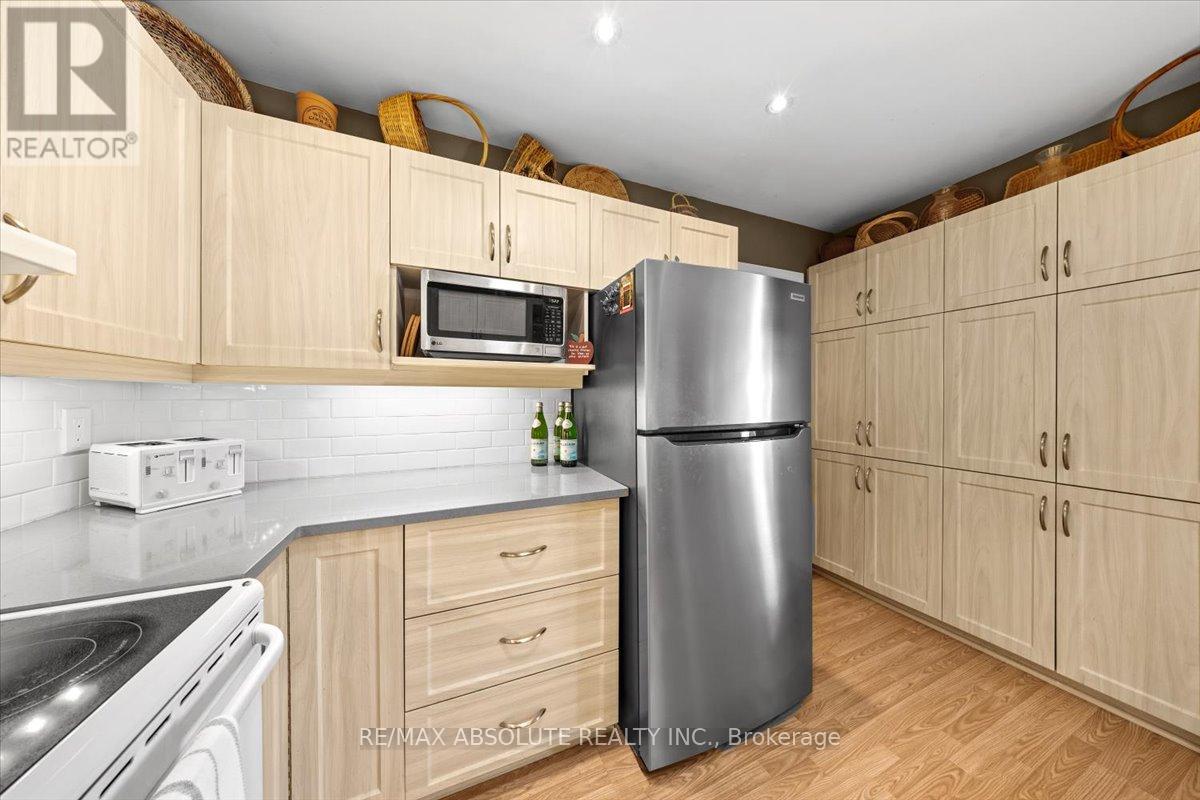This is the CUTEST condo on one of the BEST blocks in Manor Park! A SUPER quiet dead street, VERY safe convenient location! This home neighbours NCC property (literally 10 steps from your front door) that has miles of walking & biking paths with quick access to the water!! Open & airy living is what you will find once on the main floor! In the living room there is a wood burning fireplace & access to the PRIVATE southeast facing balcony, this balcony is private as you do not face any other units! Updated kitchen offers shaker style cabinets, stainless appliances, black granite countertops & the new tiled floor matches the subway tile backsplash perfectly! Smooth ceilings & pot lights were recently added to the main floor! This home has wide plank luxury laminate & ceramic tile – JUST carpet on the stairs! FRESHLY painted! SUPER clean & SO SO loved! Main floor bedroom can be used as a great space for working from home! 2 good-sized bedrooms on the top floor & a refreshed bathroom with tub & shower combo! The laundry is on the second level, what an amazing feature!!! Amazing location! NEW boiler system 2022! Nothing to do BUT to move in! Seller willing to pay special assessment in FULL on closing! There are NO pet restrictions- Snow removal included in condo fees. Enbridge approx. 70$ a month & Hydro $55 (40561113)